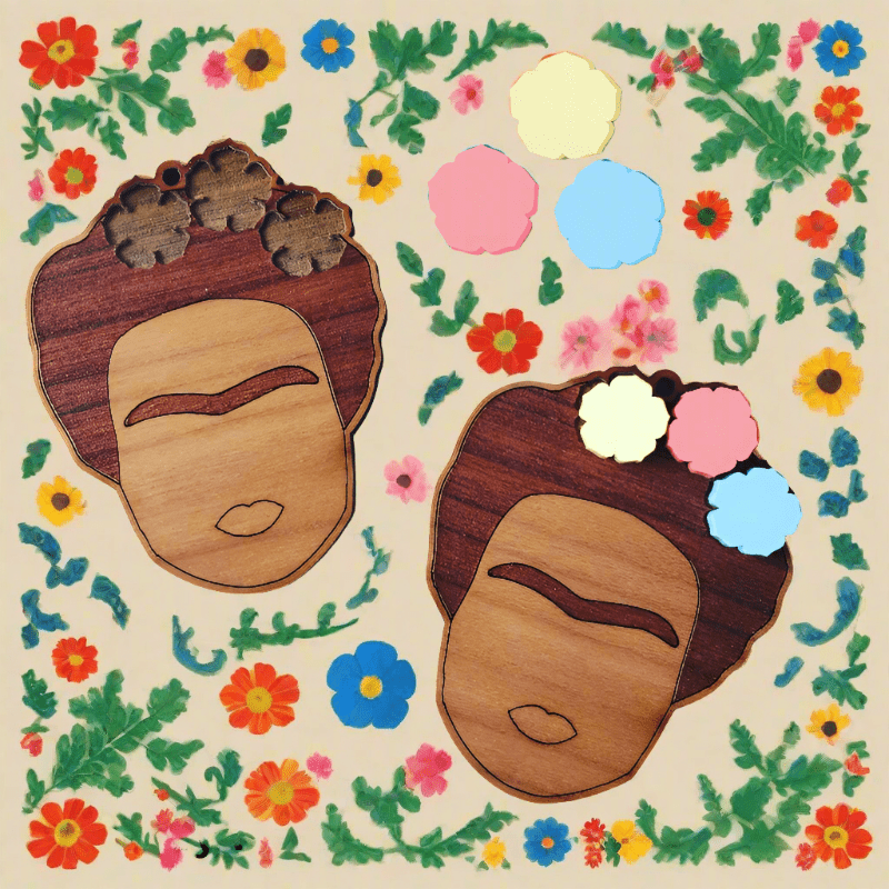 Arribbbba - Gorgeous Frida Kahlo inspired laser cut with 3 colourful flower bloom cabochons.