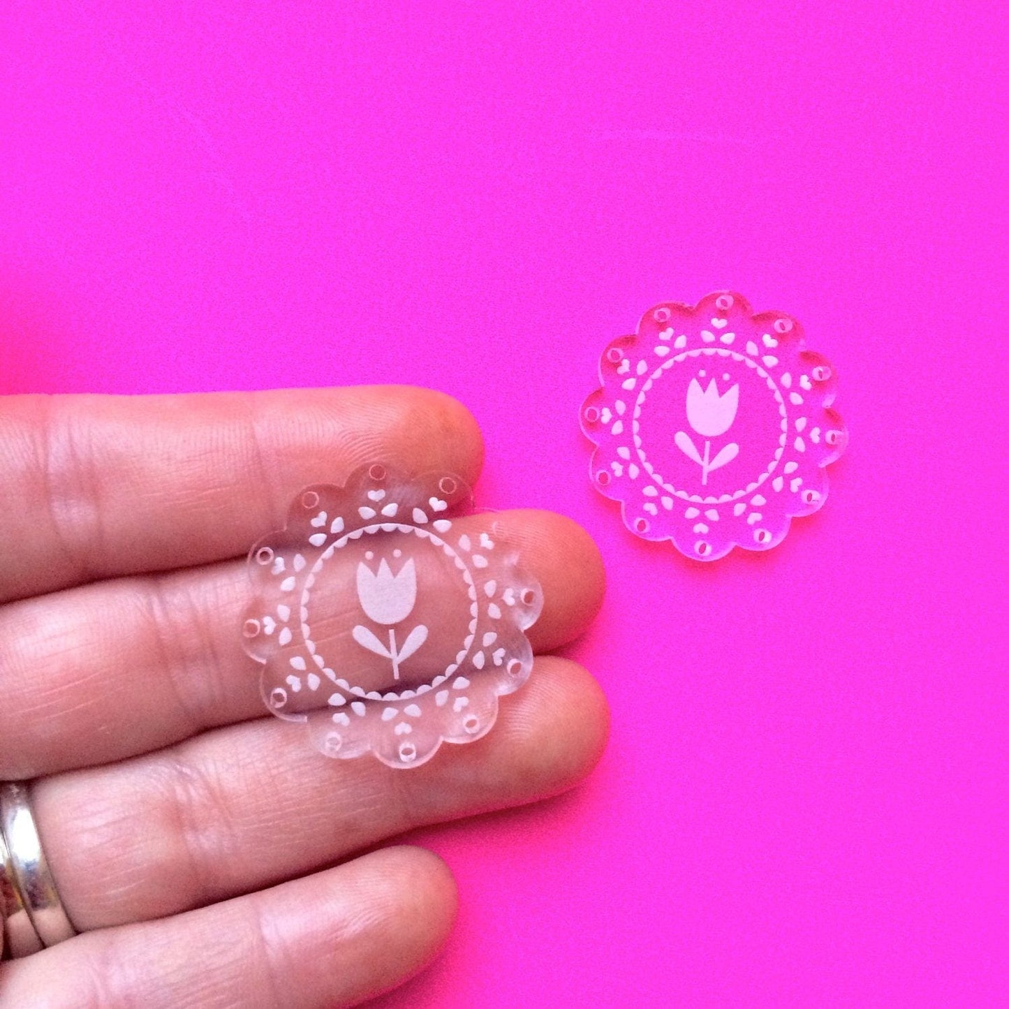 You will receive 2 pairs Peekaboo Doilies (makes one pair of dangle earrings)