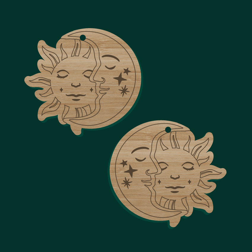 Sleepy Sun and Moon - beautifully line etched and deep etched onto 3mm Bamboo Ply
