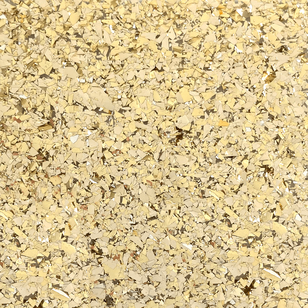 A thick layer of super shimmery golden foil shards layered onto clear acrylic.